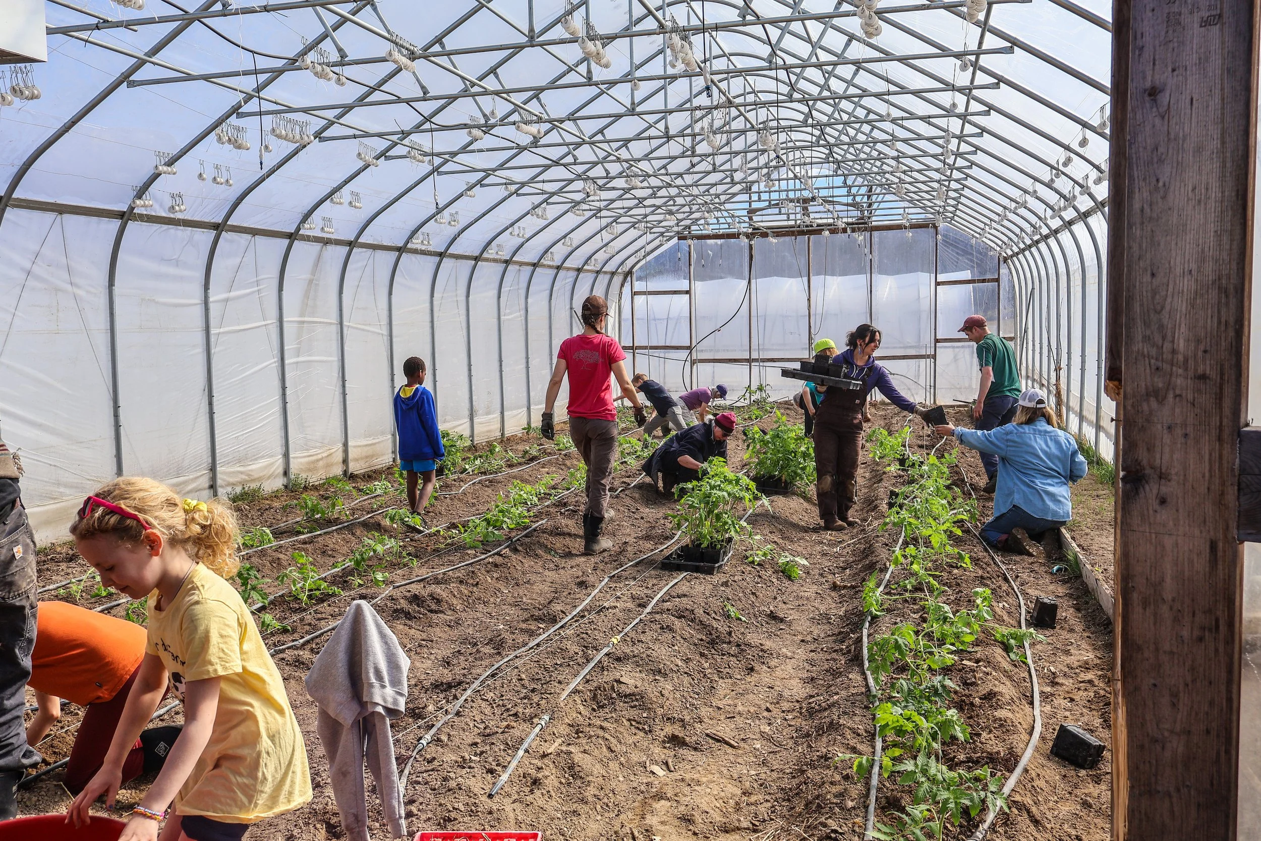 Volunteers assisted Janis and Jason in prepping their high tunnel!