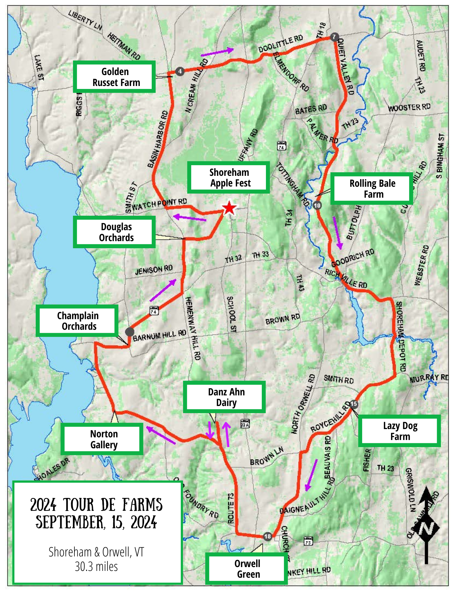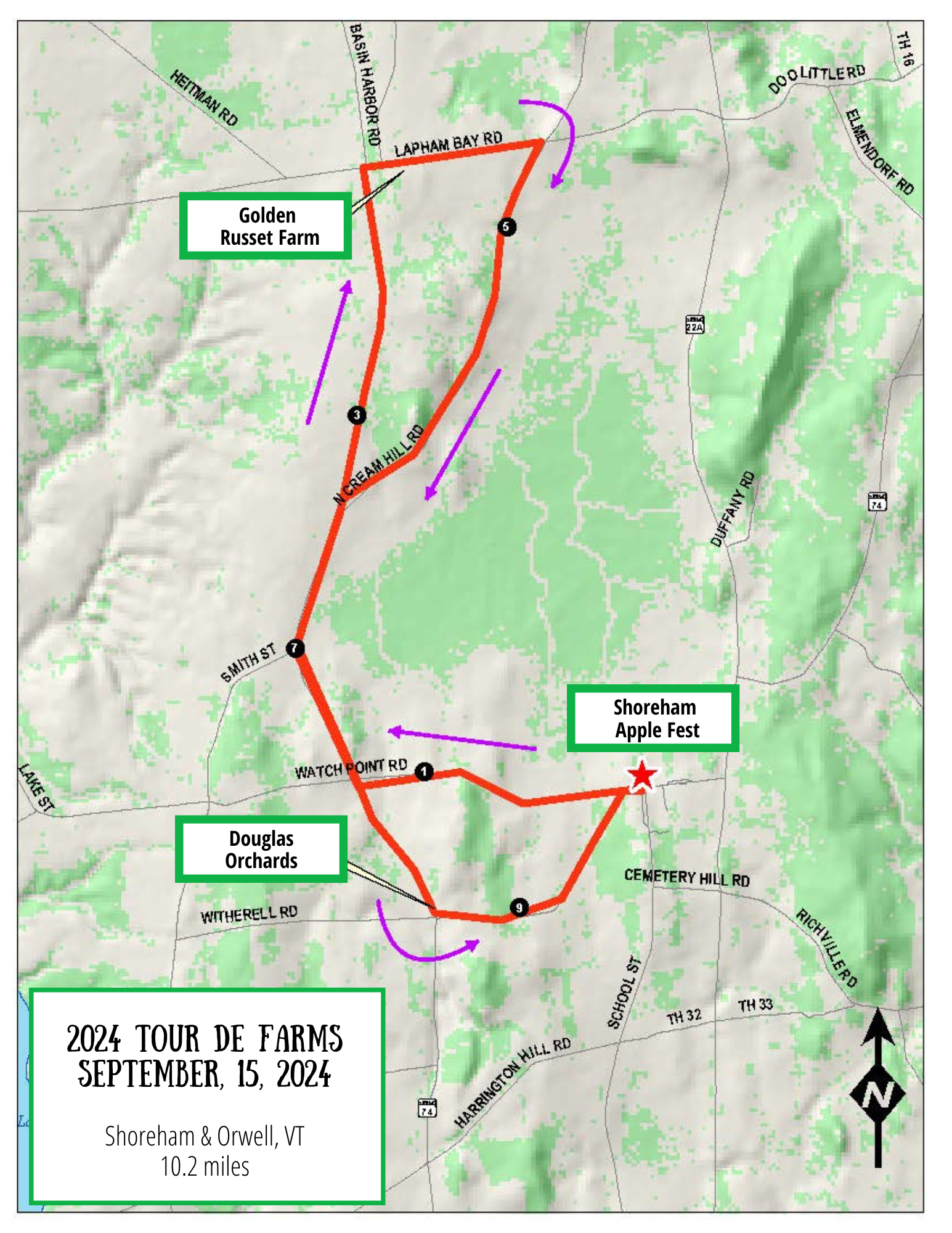 The short course includes two stops. Enjoy the Shoreham Apple Fest at the finish.